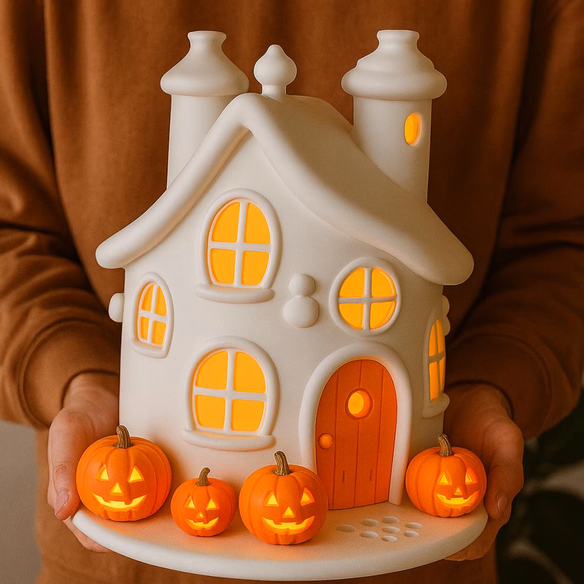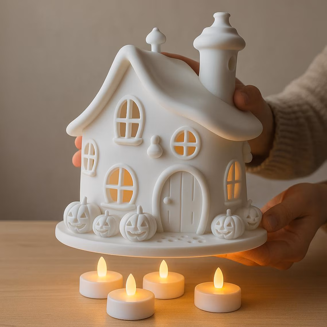 Haunted House Pumpkin Lantern STL, 3D Printable Halloween Tealight Holder, Spooky Candle House Model, Digital Download File